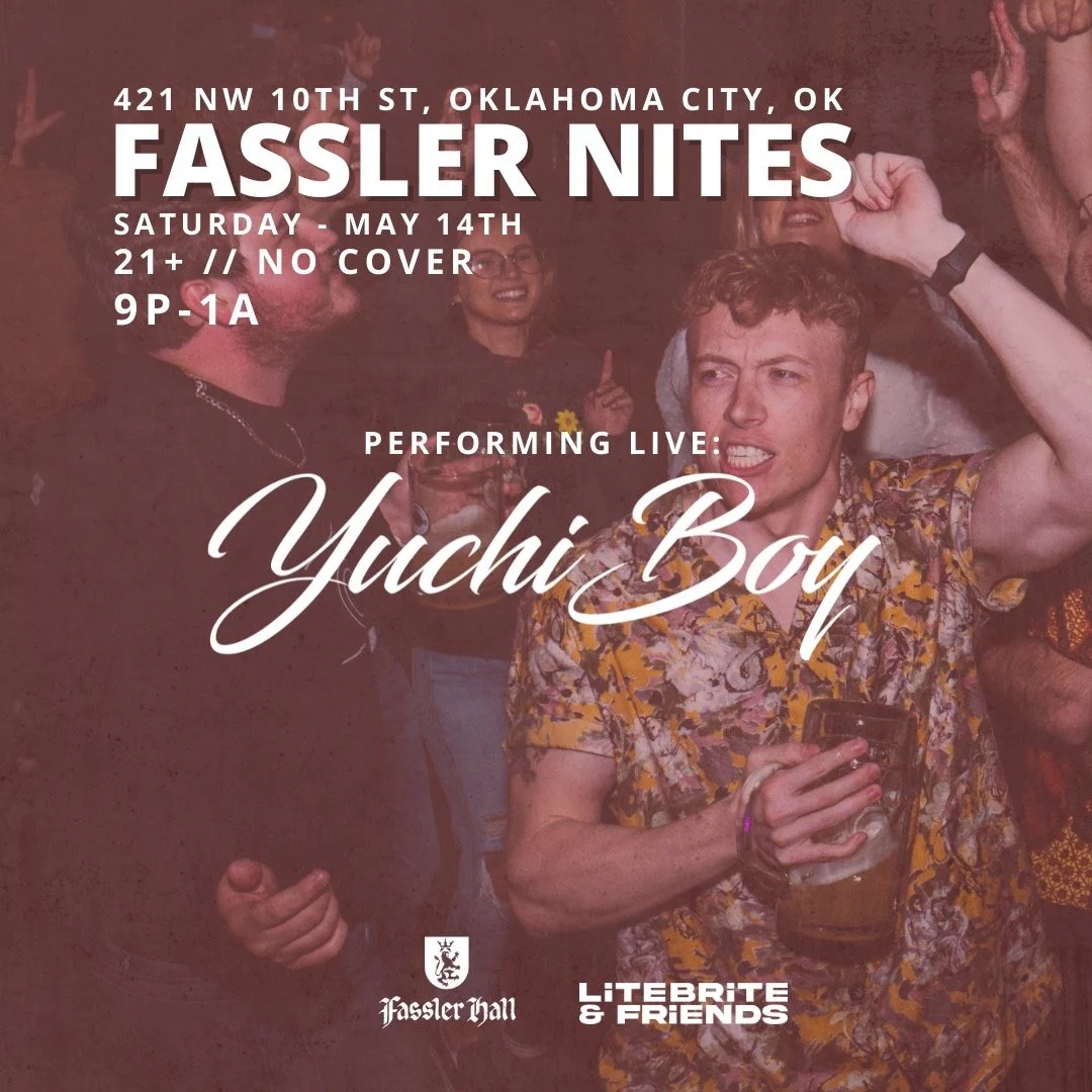 FASSLER NiTES: DJ Yuchiboy Saturday, May 14, 2022 9:00 PM Sunday, May 15, 2022 1:00 AM Google Calendar ICS DJ Yuchiboy sets the tempo for the weekend at FASSLER NiTES. Fassler Hall OKC is 21+, with no cover charge. The party starts at 9pm. We will see you then!