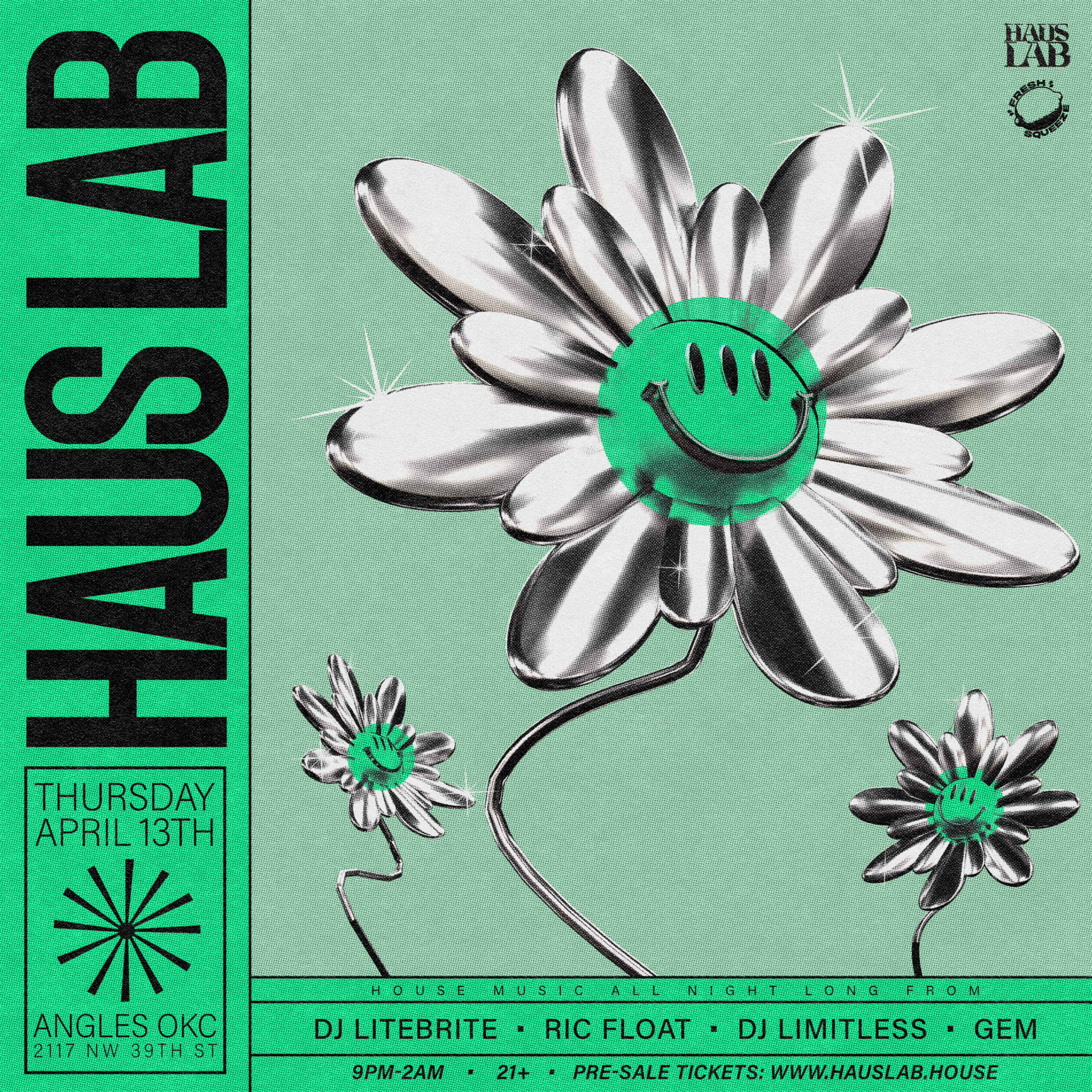 HAUSLAB Thursday, April 13, 2023 9:00 PM Friday, April 14, 2023 2:00 AM Google Calendar ICS Haus Lab is BACK Join us on April 13th for a night of house music, art, and fashion all under the disco ball at Angles Night Club in Oklahoma City.DETAILS:• 4/13/23• Angles Night Club• 9:00pm-2:00am• 21+